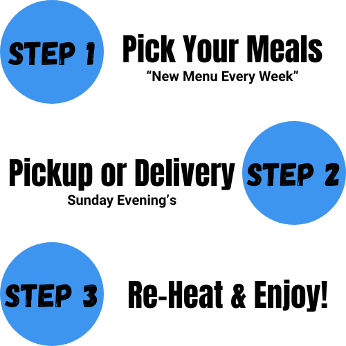 Every week we drop a brand-new menu packed with bold flavors and balanced meals. Just pick your favorites, choose pickup or delivery on Sunday evening, and when it’s time to eat, reheat and dig in. Fresh, simple, and always ready when you are.